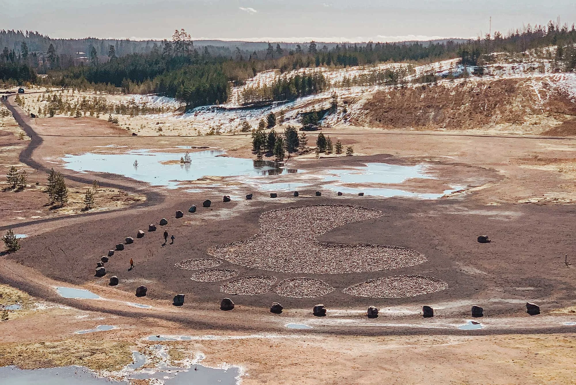 Suomiehen luontopolku sijaitsee Hyvinkään reunamilla Ruduksen entisellä soranottoalueella. Soranotto alueella päättyi 2014, jonka jälkeen alue on kuulunut Ruduksen LUMO-ohjelmaan, jonka tavoitteena on maiseman laadun ja luonnon monimuotoisuuden parantaminen sekä virkistyskäyttömahdollisuuksien lisääminen. Paikan erikoisuus on kaksi ympäristötaideteosta. Toinen on kivistä rakennettu Vilma Pylkön jättiläismäinen jalanjälki ja toinen Riku Lumiaron Mennyttä aikaa etsimässä -ympäristötaideteos on rakennettu alueen kivistä, vanhoista rintamiestalon ikkunoista, heinäseipäistä sekä eläinten luista. Jätti jalanjälki näkyy hienosti vastapäiseltä rinteeltä.